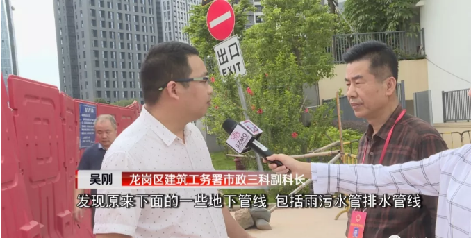 赵志明代表,现场联络了项目所属单位:龙岗区建筑工务局的项目负责人来到现场。据这位负责人,这个工程是龙岗区工务局金融基地“七通一平”一期修缮工程——老琅路工程。